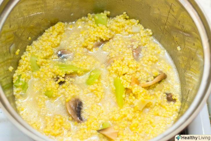 Зніміть кіноа з вогню і залиште під кришкою на 5 хвилин.це дозволить їй увібрати залишилася в каструлі рідина.