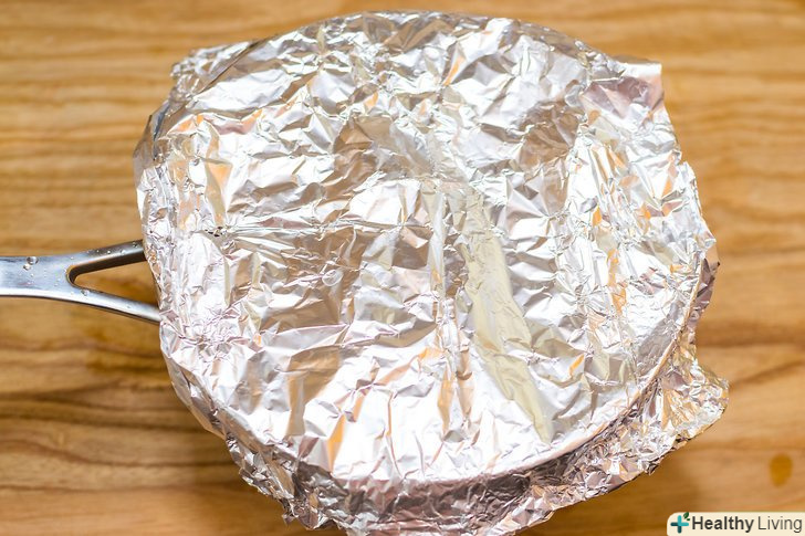 Як тільки вода закипить, перекладіть кіноа в форму для випічки 20 на 20 см. [2] розподіліть кіноа за формою і повністю накрийте форму для випічки алюмінієвою фольгою.