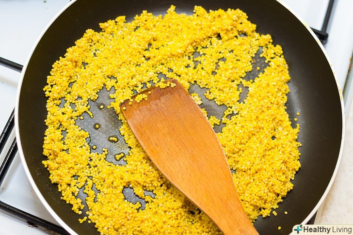 Обсмажте кіноа в каструлі (за бажанням).налийте трохи оливкової олії на дно каструлі і поставте на середній вогонь. Додайте кіноа і обсмажте близько 1 хвилини. Це підкреслить горіховий присмак кіноа.