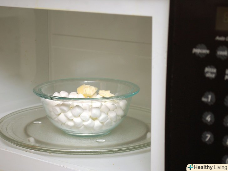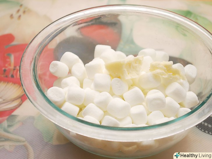 Використовуйте ті ж інгредієнти, як і в оригінальному (попередньому) рецепті.- Покладіть масло і зефір в миску, яку можна використовувати в мікрохвильовій печі.