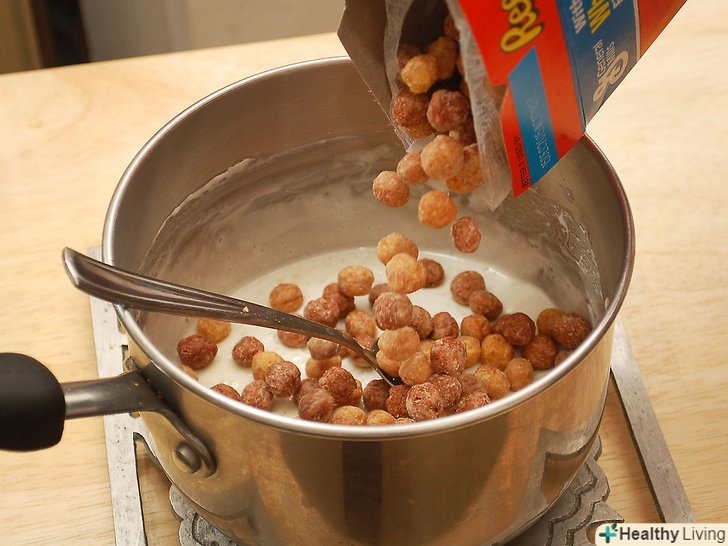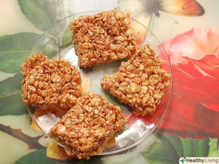 - 5 1/2 склянок пластівців для сніданку (підійдуть будь-які повітряні пластівці; в оригінальному рецепті вказуються рисові пластівці, але какао, вівсяні і фруктові пластівці також будуть смачні)