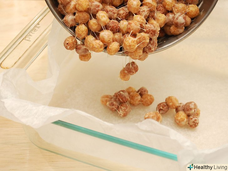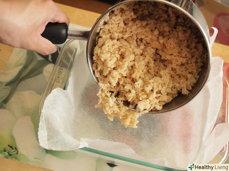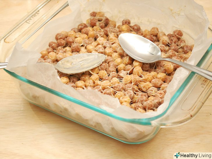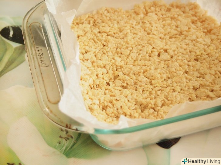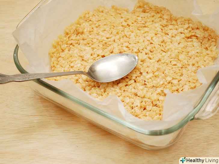 Викладіть суміш на деко і пригладьте лопаткою.можливо, вам доведеться кілька разів змастити лопатку маслом, так як суміш буде дуже липка. Ви також можете покласти на суміш вощений папір і притиснути руками.- Дайте ласощі охолонути до кімнатної температури протягом 15-20 хвилин.