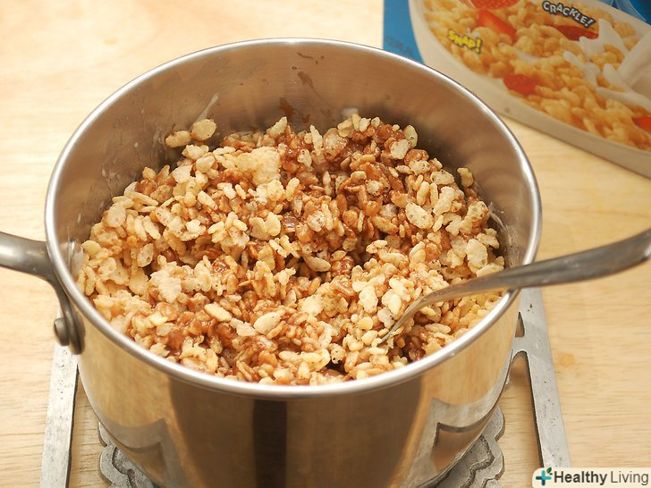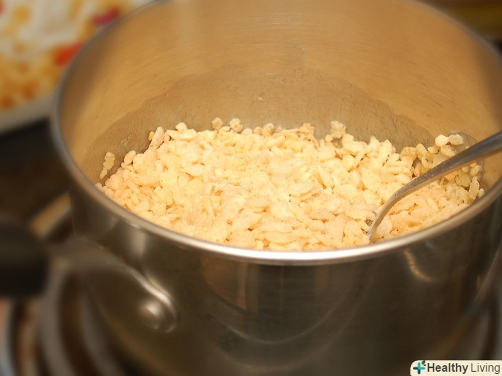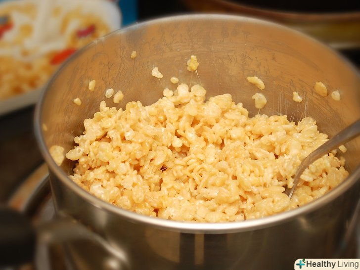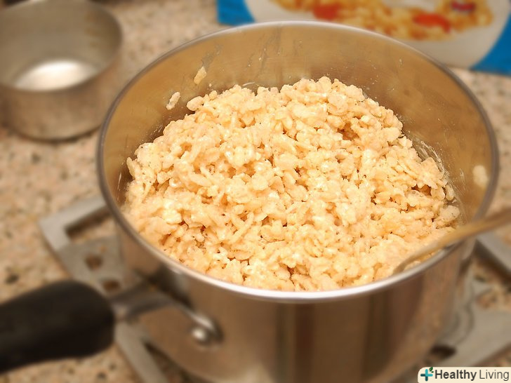 Додайте повітряний рис.щоб ретельно покрити повітряний рис сумішшю вершкового масла і зефіру, акуратно перемішайте.