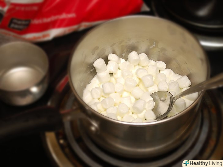 Підготуйте все, перш ніж нагрівати зефір.він може підгоріти, якщо ви забаритеся з іншими роботами. Крім інгредієнтів зберіть всю необхідну начиння (повний список ви знайдете в нижній частині статті під назвою "що вам знадобиться").- Будьте терплячі. Ласощі необхідно готувати на низькому вогні, інакше воно може підгоріти або зіпсуватися. Дотримуйтеся цього правила, і у вас вийде прекрасний десерт.
