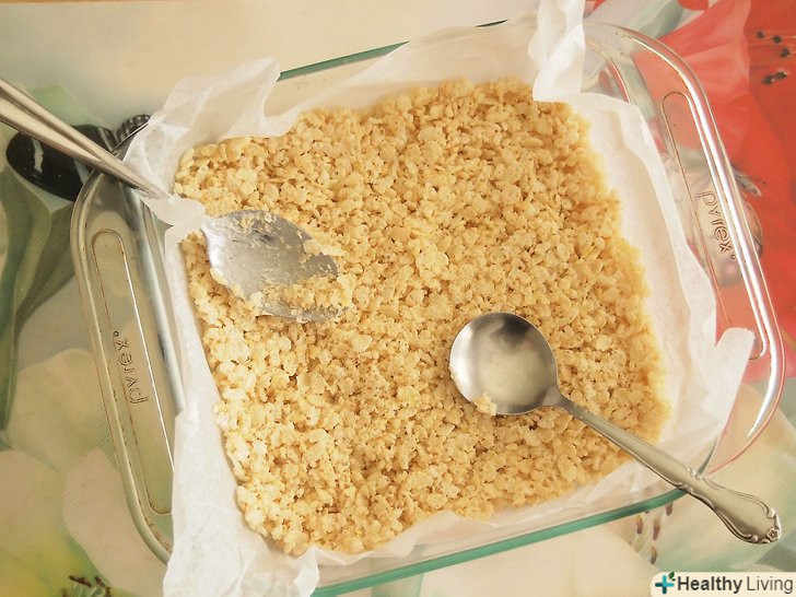 Покладіть суміш в заздалегідь підготовлену форму або деко.притисніть суміш змащеною маслом лопаткою або руками за допомогою вощеного паперу.