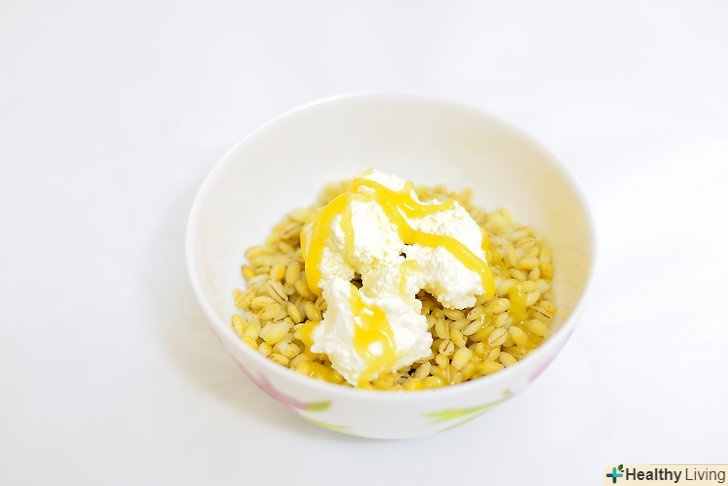 Підсолодіть фарро.перемішайте фарро кімнатної температури з сиром Рікотта і медом за смаком. При бажанні прикрасьте корицею.