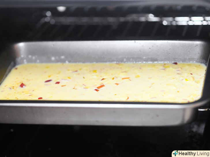 Викладіть суміш в змащену жиром скляну або металеву форму для випічки і помістіть в попередньо розігріту духовку.