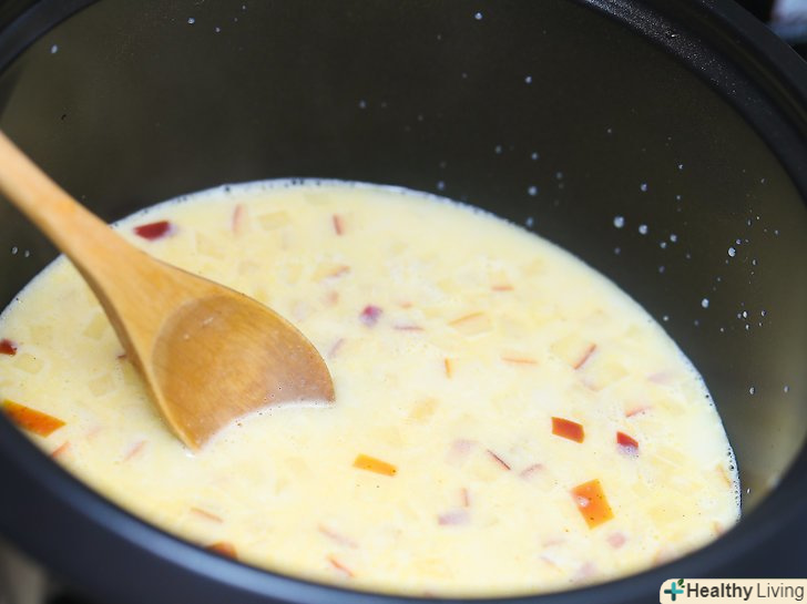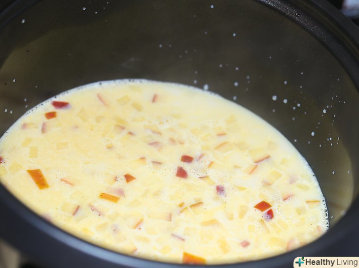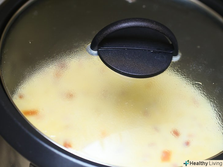 Помістіть необроблений овес, сіль, молоко і воду в повільноварку.за бажанням можете додати яблука, неочищений цукор, корицю, масло і/або горіхи.[3]