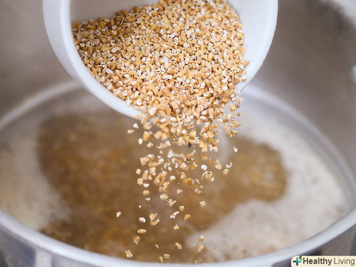 Додайте необроблений овес в каструлю, покладіть дрібку солі, доведіть до кипіння і продовжуйте варити, розмішавши овес дерев'яною ложкою.
