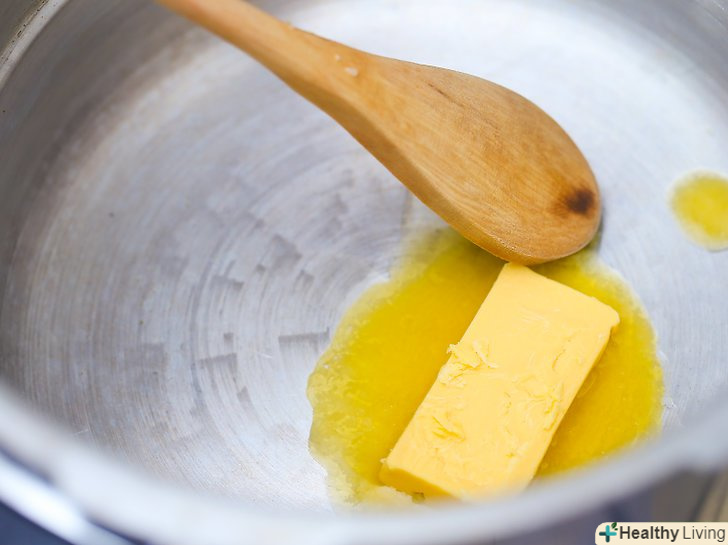 Тим часом поставте каструлю середніх розмірів на плиту при середній температурі.покладіть масло в каструлю, нехай воно тане.