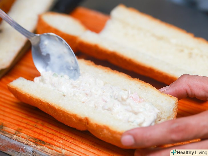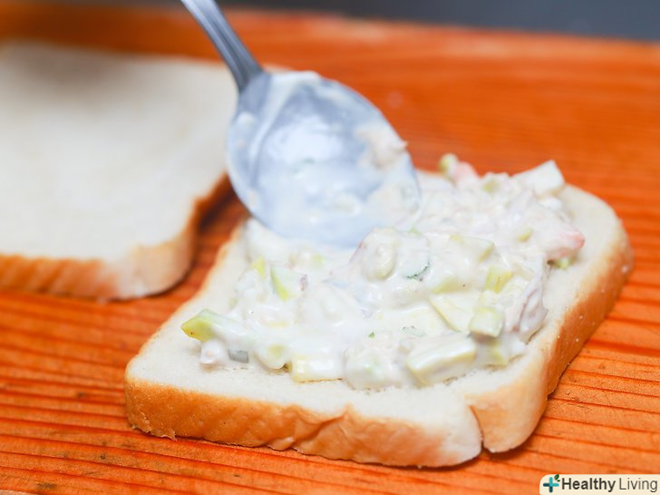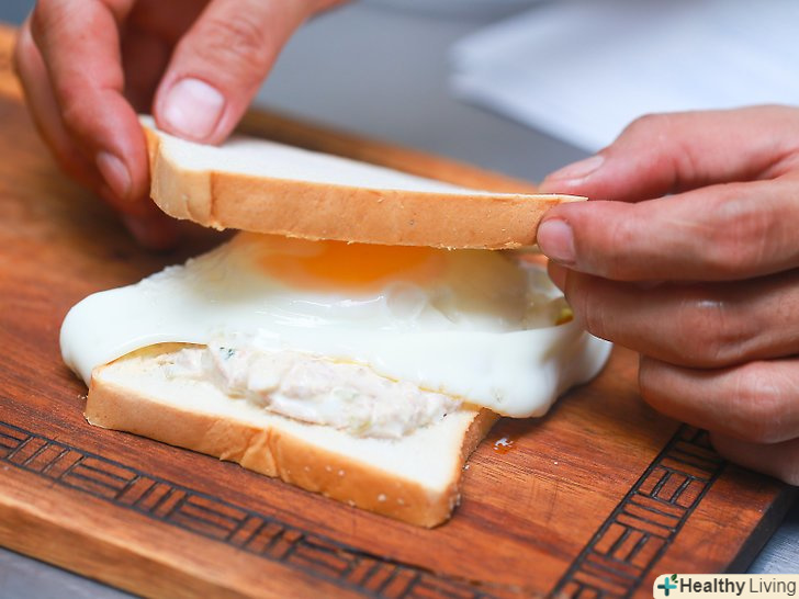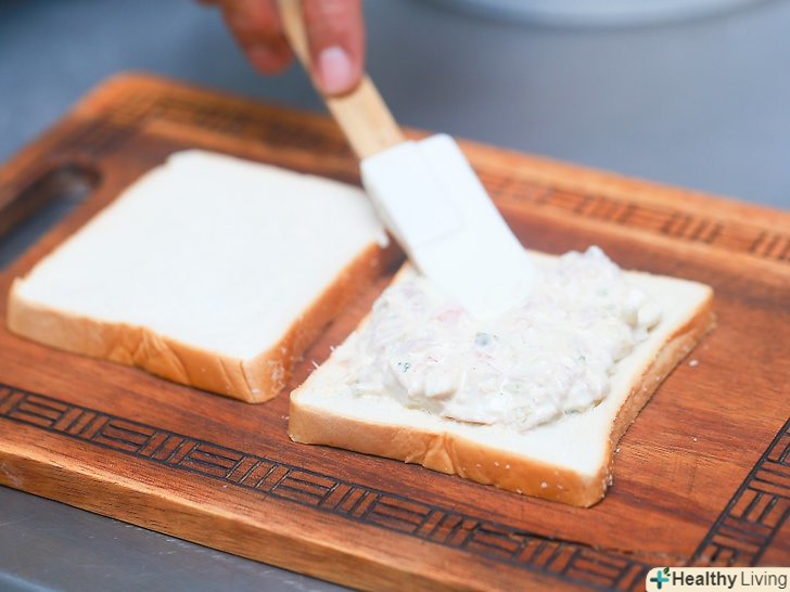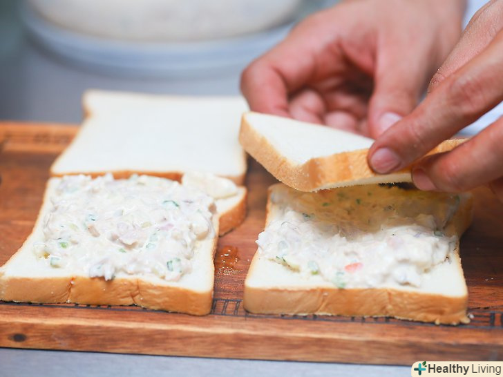Зробіть сендвічі.рівномірно розподіліть суміш по двох шматочках хліба, а потім накрийте залишилися шматочками хліба, щоб вийшло два сендвічі.- Якщо хочете, ви можете обсмажити кожен шматочок хліба - так сендвіч буде теплим і хрустким.