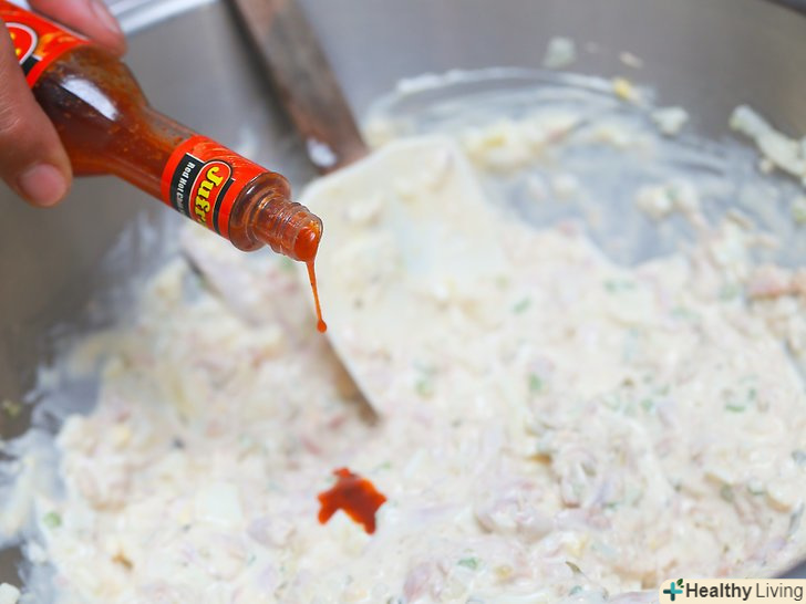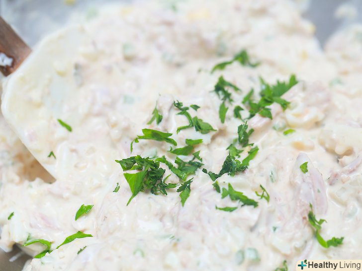 Перемішайте всі інгредієнти.у мисці середнього розміру змішайте разом тунець, цибулю-шалот, майонез, сік лимона, петрушку, сіль, гострий соус і перець.- Перемішайте.
