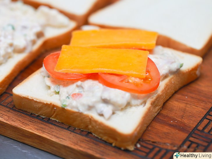 Зробіть сендвічі.після додавання всіх інгредієнтів, накрийте кожен сендвіч шматочком хліба.- Якщо хочете, ви можете обсмажити кожен шматочок хліба - так сендвіч буде теплим і хрустким.