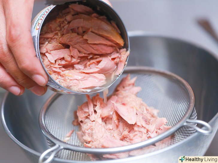 - Промийте і просушіть рибу кілька разів. Більшість людей просто відкривають банку і зливають рідину, але якщо ви хочете, щоб смак був краще, злийте рідину і промийте рибу один або два рази, використовуючи для цього друшляк, а після промокніть паперовим рушником, щоб видалити надлишки води.