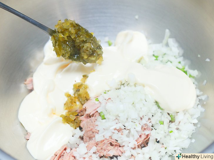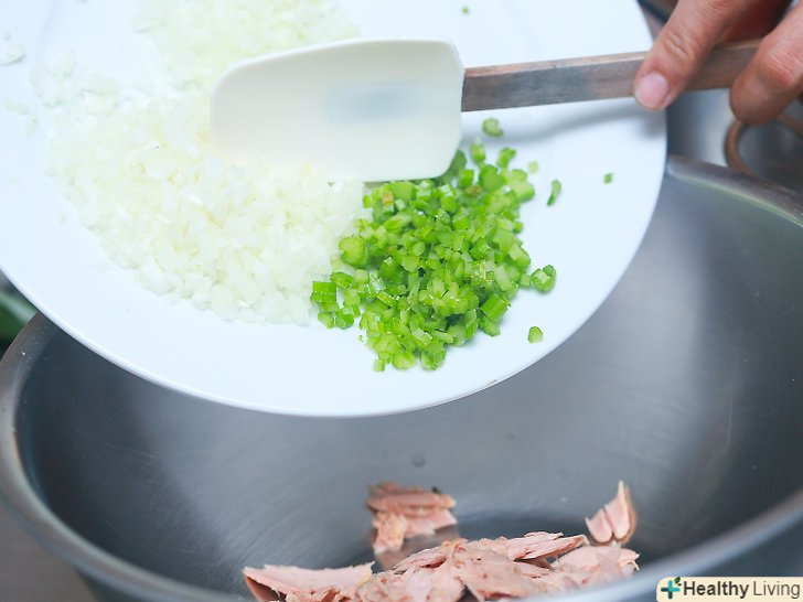 Перемішайте всі інгредієнти.покладіть тунець в миску середнього розміру. Додайте селеру, цибулю, майонез, сік лимона, сіль і перець.- Ретельно перемішайте.