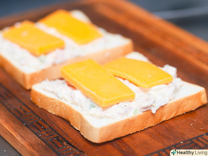 Зробіть сендвічі.намажте суміш з тунцем на 4 шматочки підсмаженого хліба, або, якщо ви використовуєте коржі або лаваш, покладіть суміш всередину і загорніть.- На суміш з тунцем покладіть один шматочок сиру Фета або будь-якого іншого сиру на ваш смак.