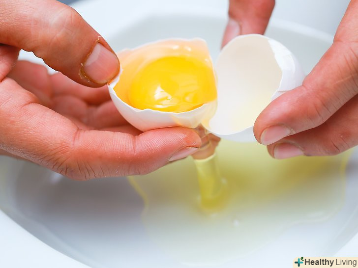 - Ви також можете відокремити білок від жовтка, тримаючи розбите яйце над мискою і перекидати жовток з однієї половинки шкаралупи в іншу так, щоб білок капав в миску. Покладіть відокремлений жовток у другу миску.