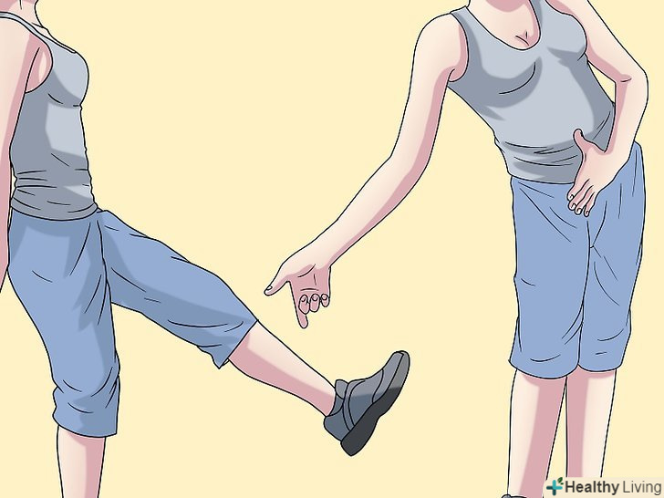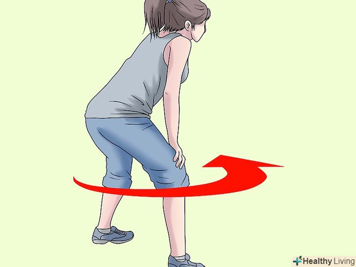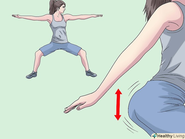Поверніться і витягніть прямі руки: одну вперед, іншу назад. Зігніть коліна. Вип'ятіть зад і похитуйте їм вгору і вниз. Потім зробіть крок вперед і погойдуйтеся. Знаю, звучить нерозумно, але інакше не опишеш.