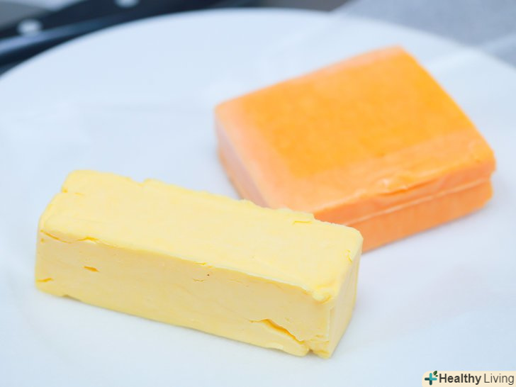 Підготуйте сир.залиште на кілька годин вершкове масло на робочому столі разом з сиром, щоб воно стало м'яким. Після того, як воно стане м'яким, перекладіть масло у велику миску. Збивайте масло і сир міксером до тих пір, поки маса не стане схожою на вершковий сир. Це повинно зайняти близько 15-30 хвилин.- Вам буде простіше готувати, якщо для міксера є підставка. Так ви зможете збивати суміш, не тримаючи міксер в руці.