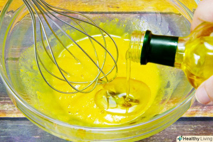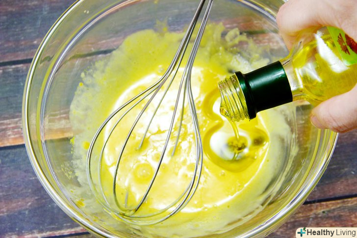 При збиванні поступово додайте ⅓ від усього масла.продовжуючи постійно збивати майонез, поступово влийте в нього ¼ склянки (60 мл) оливкової олії (по ¼ чайної ложки (1,25 мл) за раз).- На це у вас піде близько 4 хвилин.