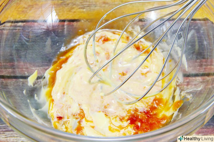Збийте віночком гострий соус з майонезом.помістіть підготовлені майонез і гострий соус в скляну миску і активно збийте віночком до отримання однорідної маси.-