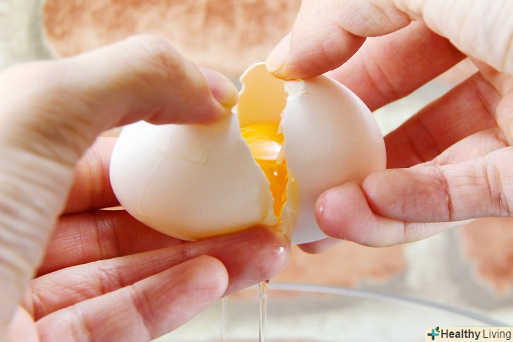 Відокремте жовток від яєчного білка. [3] пробийте шкаралупу яйця об край невеликої миски. Притримайте жовток шкаралупою і дайте білку стекти в миску. Для приготування майонезу використовуйте тільки жовток, білок можна просто викинути.- Можливо, вам буде потрібно кілька разів обережно перекласти жовток з однієї половинки шкаралупи в іншу, щоб повністю відокремити його від білка.