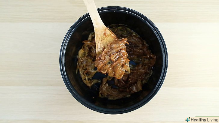 Карамелізуйте цибулю в мультиварці, щоб не працювати руками.заповніть мультиварку скибочками цибулі не менше, ніж на половину, потім додайте одну столову ложку (15 мл) оливкової олії або вершкового масла на кожні 450 грам цибулі. Накрийте кришкою і поставте на мінімум. Готуйте цибулю при низькій температурі протягом 10 годин, щоб він став коричневим і м'яким.[11]- Якщо згадаєте, іноді перемішуйте цибулю, щоб він готувався рівномірно, але можна цього не робити.