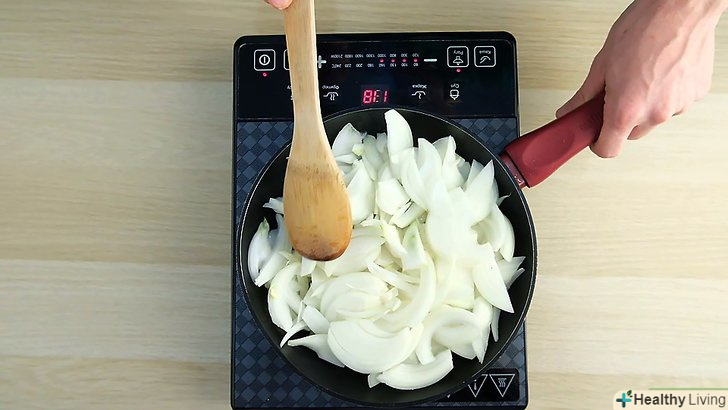 Готуйте цибулю протягом 15-20 хвилин, щоб злегка його карамелізувати.зменшіть вогонь до середньо-низького і перемішуйте цибулю кожні 2-3 хвилини протягом як мінімум 15 хвилин. Лук повинен стати світло-коричневим, і можна буде вимкнути вогонь, якщо вам досить легкої карамелізації.[4]- Використовуйте злегка карамелізовану цибулю для класичногофранцузького цибулевого супу або продовжуйте готувати його, щоб домогтися більшої м'якості і насиченого смаку.
