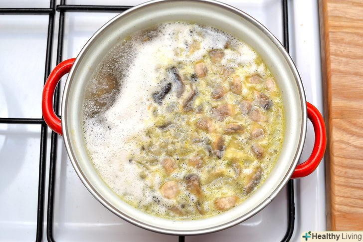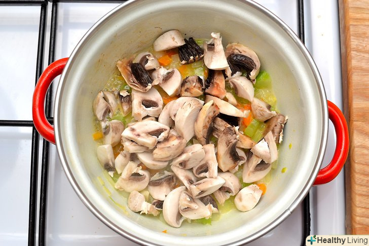 Додайте грибів.продовжуйте готувати поки гриби не стануть м'якими.