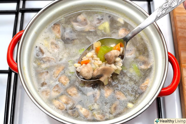 Варіть на повільному вогні.варіть протягом години, час від часу помішуючи суп ложкою. Суп буде готовий, коли ячмінь стане ніжним, а суп загусне.