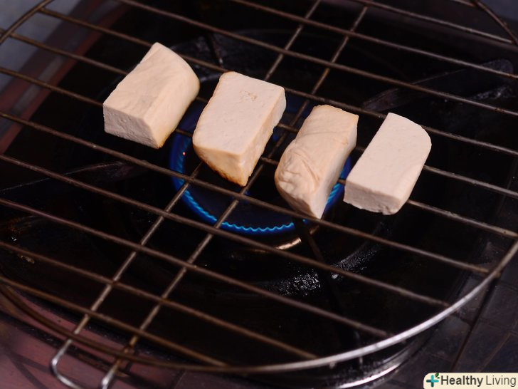 Підсмажте екстра-твердий тофу на грилі, щоб отримати прекрасні ласощі.не додавайте приправи і просто поріжте тофу довгими смужками. Смажте сир на грилі протягом 5 хвилин, потім переверніть смужки і смажте їх ще 5 хвилин. Після цього зніміть тофу з вогню і додайте приправи на ваш смак.[14]