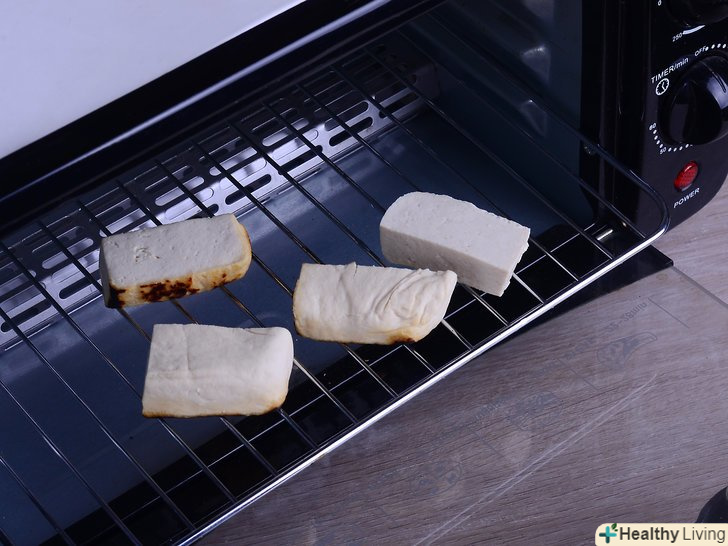 Щоб отримати оригінальне блюдо, запечіть екстра-твердий тофу в духовці.Розігрійте духовку до 200 °C. поріжте тофу кубиками і приправте його рослинним маслом. Посипте сир арроурутом і морською сіллю. Застеліть деко пергаментним папером і викладіть на ній рівним шаром шматочки тофу. Запікайте сир протягом 15 хвилин, потім переверніть кубики і готуйте їх ще 15 хвилин.[15]