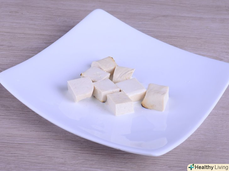 - Обваляйте тофу в кукурудзяному крохмалі, якщо хочете, щоб після запікання або смаження утворилася хрустка скоринка. Струсіть з сиру зайвий крохмаль.[9]