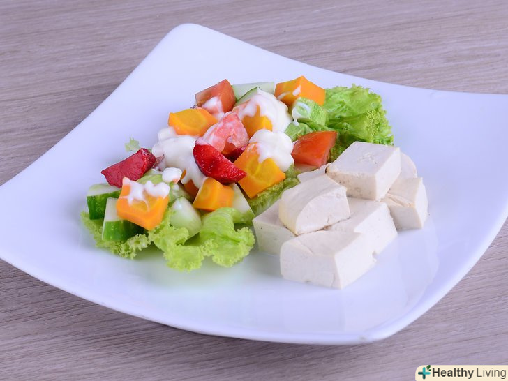 Додавайте тофу в готові страви.якщо ви приготували суп або салат і відчуваєте, що чогось не вистачає, додайте трохи тофу! Можна використовувати як приготований, так і сирої тофу. Спробуйте наступне:- Посипте шматочками тофу салат;