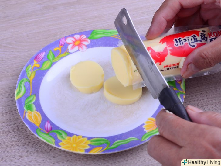 Відріжте від тофу потрібне вам число скибочок.для однієї страви досить 4-6 скибочок. Ріжте тофу по ширині, а не по довжині, проте не нарізайте його кубиками.[2]