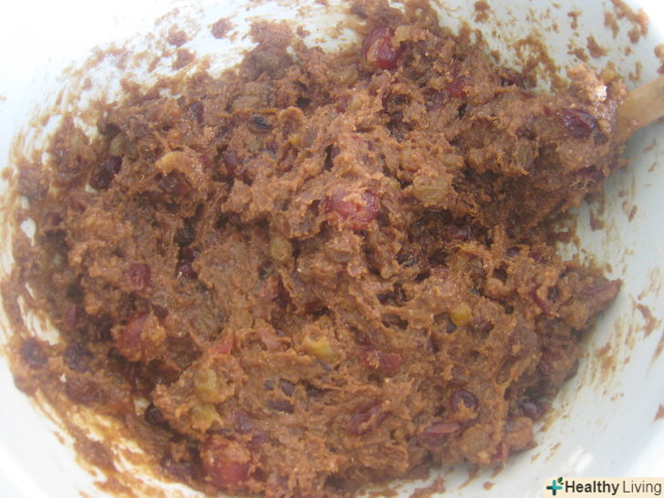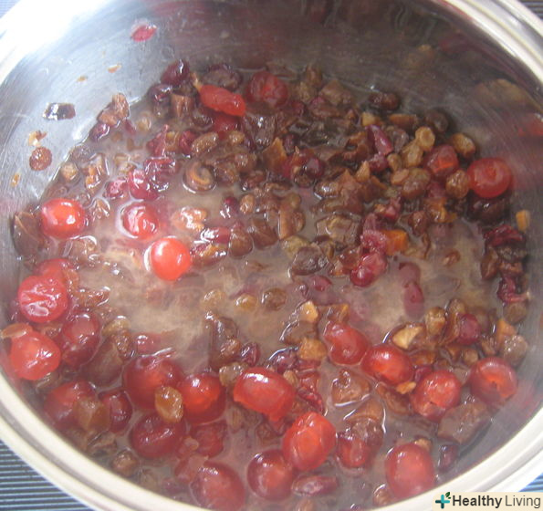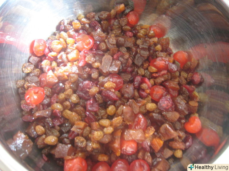 Помістіть сухофрукти у велику миску для змішування.наріжте такі великі сухофрукти, як абрикоси і фініки.-
