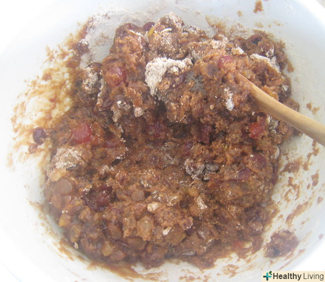 - Змішайте сухі інгредієнти у великій мисці.просійте борошно і додайте залишилися сухі інгредієнти. Змішавши.