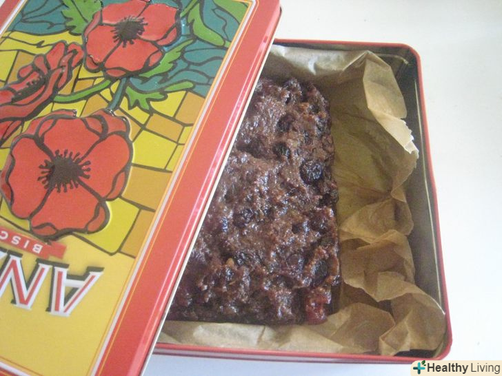 Зберігайте після охолодження.оберніть пластиковою харчовою плівкою або фольгою. Помістіть у вакуумний контейнер для пирога з кришкою. Зберігайте в прохолодному темному місці. Зберігайте в контейнері до подачі.- Якщо хочете, то можете поливати пиріг однією або двома столовими ложками алкоголю кожні два тижні протягом зберігання, для підтримки вологості.