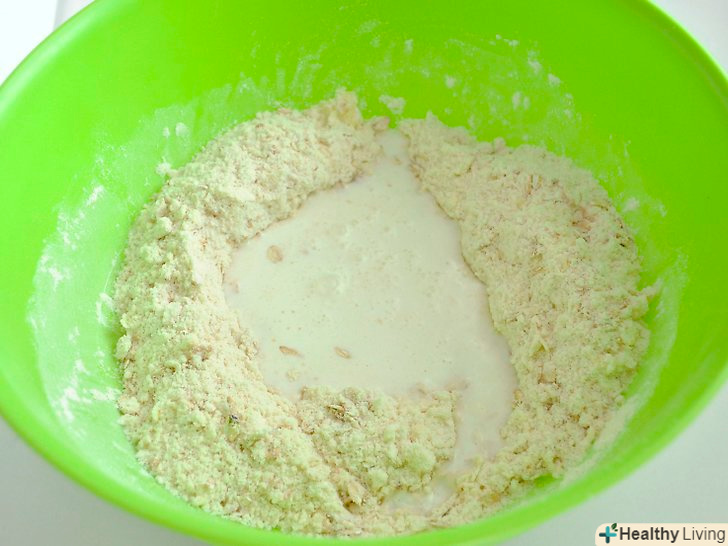 Зробіть в середині тесту поглиблення і додайте молоко. Ретельно змішайте.