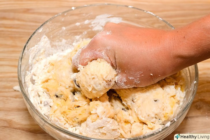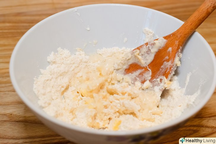 - Поступово додайте воду. Оцініть консистенцію суміші, поки заважаєте її; вам потрібно лише стільки води, щоб суміш склеїлася, і ви могли замісити з неї тісто.