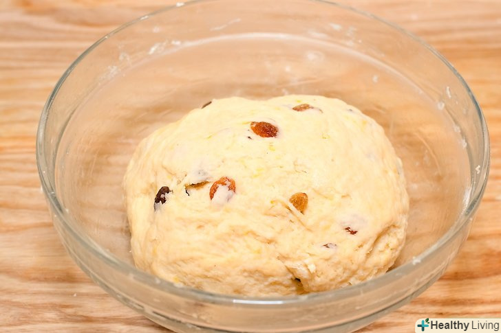Покладіть тісто в миску і закрийте зверху плівкою або кухонним рушником.поставте тісто в тепле місце, поки воно не збільшиться в розмірі вдвічі. Переконайтеся, що тісто не стоїть на протязі. Поставте тісто, наприклад, поруч з гарячою духовкою або в комору. Верхня зовнішня частина холодильника теж хороший варіант (холодильники виділяють дуже багато тепла, через свою верхню частину). Слідкуйте, щоб тісто піднялося в два рази, зазвичай це займає одну-дві години.