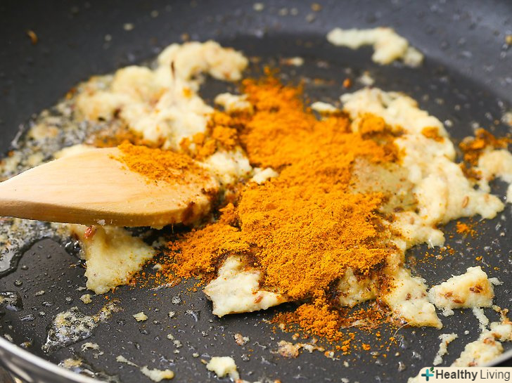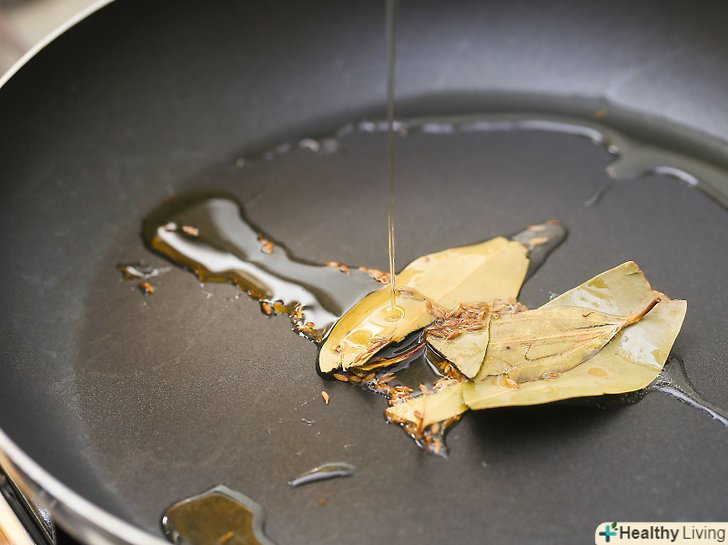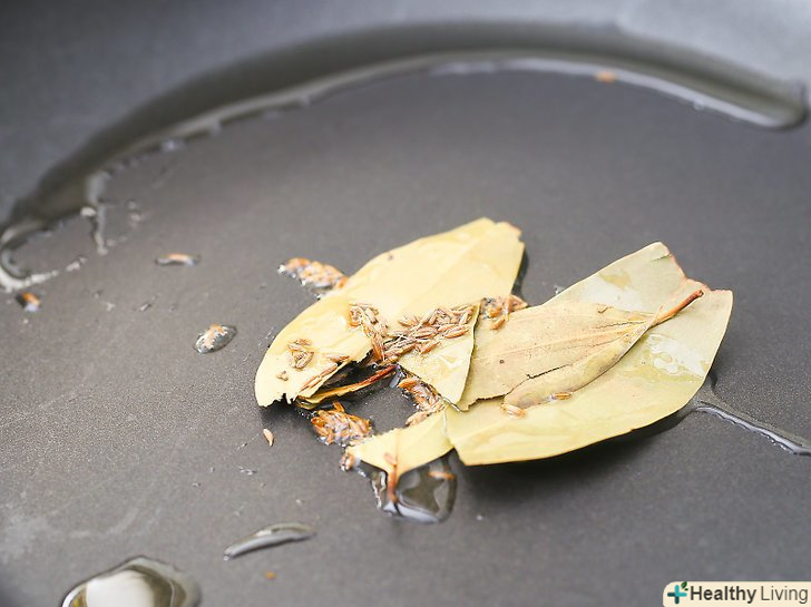 Нагрійте велику сковороду з антипригарним покриттям до середньої температури і додайте насіння кмину, кропу, лавровий лист, а також паличку кориці; все це повинно смажитися близько хвилини, поки не з'явиться аромат.