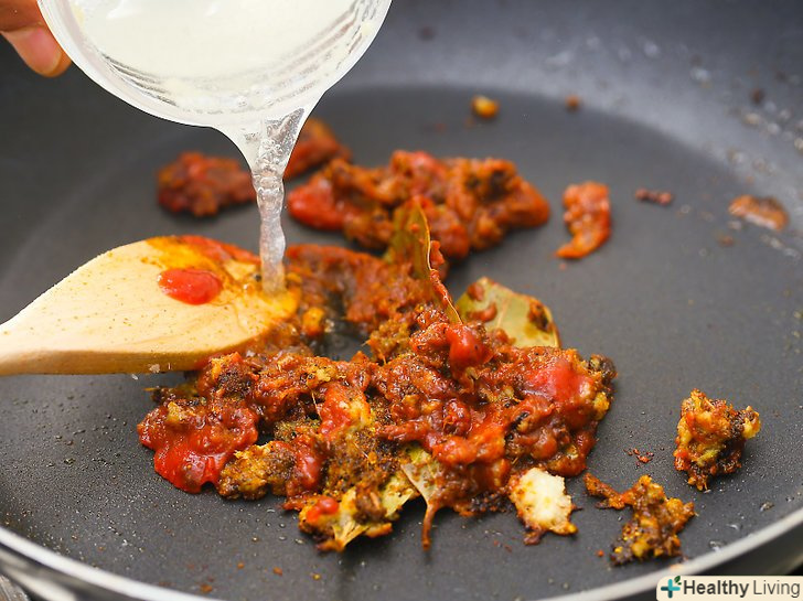 Додайте томатну пасту і воду, а потім залиште каррі смажитися ще на 10 хвилин, періодично помішуючи його.каррі готовий, якщо він досить густий і повільно стікає з ложки. У цьому випадку ви можете знімати каррі з плити.