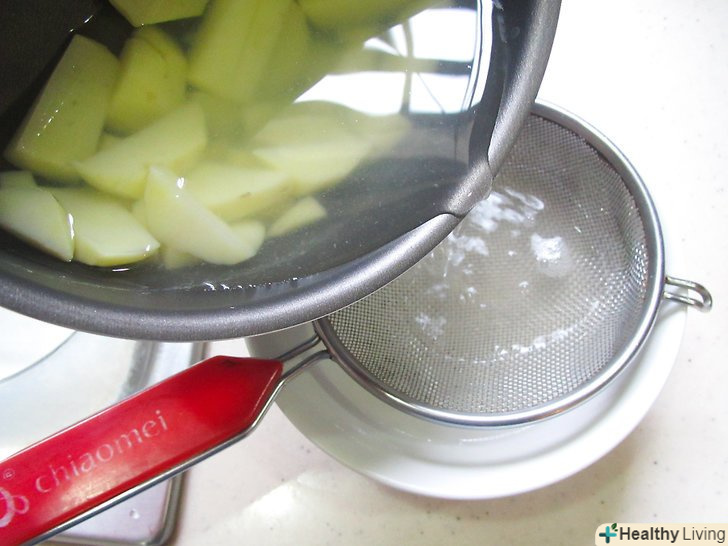 Злийте воду з каструлі.- Помістіть друшляк в раковину і злийте воду з картоплі.