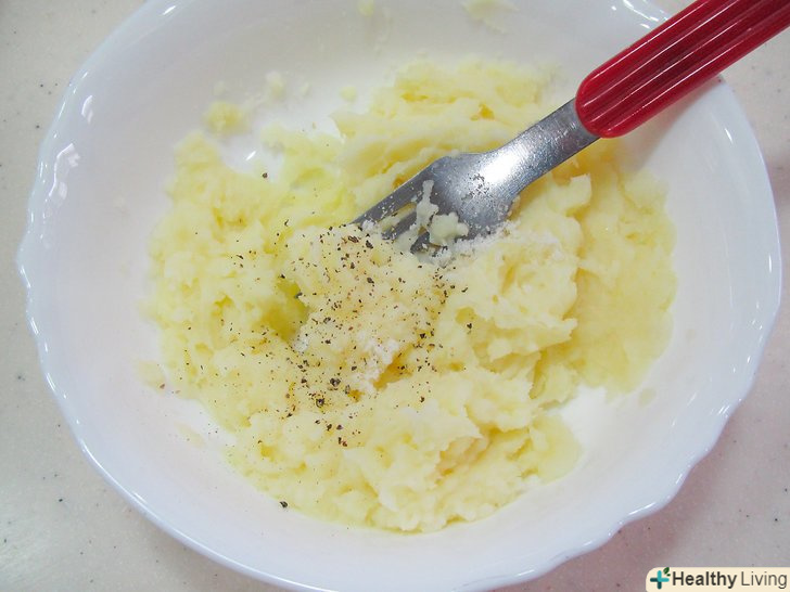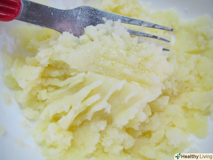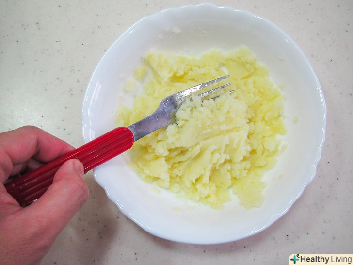 Перекладіть картоплю в глибоку миску і потовчіть його, використовуючи вилку або толкушку.ви також можете використовувати пристосування для приготування овочевого пюре (картоплем'ялка), завдяки якому виходить повітряне картопляне пюре.