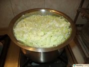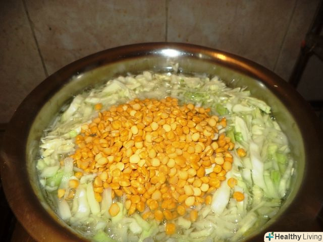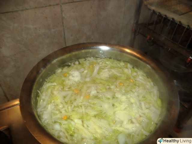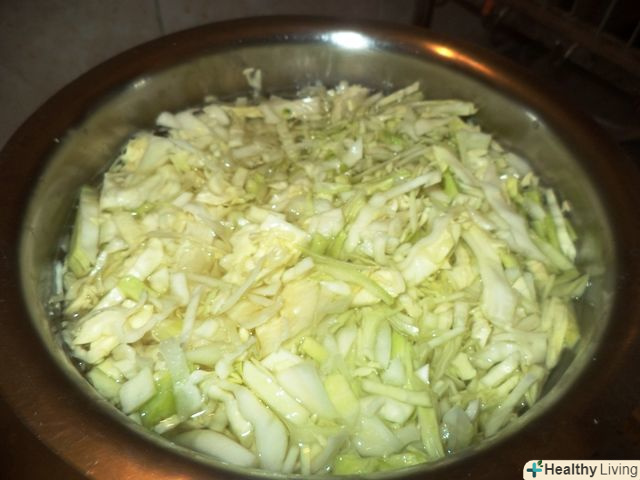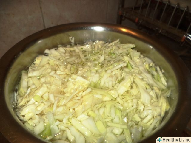 Вимийте нарізану капусту під проточною водою.потім процідіть і додайте прісну воду. Потім доведіть воду до кипіння.