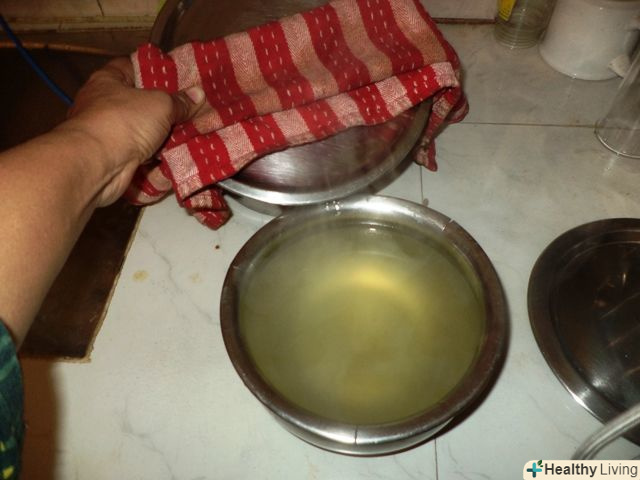 Злийте воду. Накрийте каструлю марлею або притримуйте вміст щипцями.