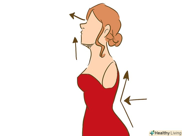 Будьте в правильній позі.у танці ваша спина повинна бути рівною, підборіддя піднято до верху, а плечі розправленими. При цьому ви не повинні забувати про правильне дихання. Ваше тіло повинно випромінювати силу у всьому.[1]- Завжди дивіться прямо перед собою. Тримайте голову злегка піднятою, як мінімум настільки, щоб можливо було дивитися прямо на партнера. Якщо ваша голова опущена вниз, а очі стежать за рухом ніг, то це явна ознака, що ви нервуєте і не впевнені в своїх діях.