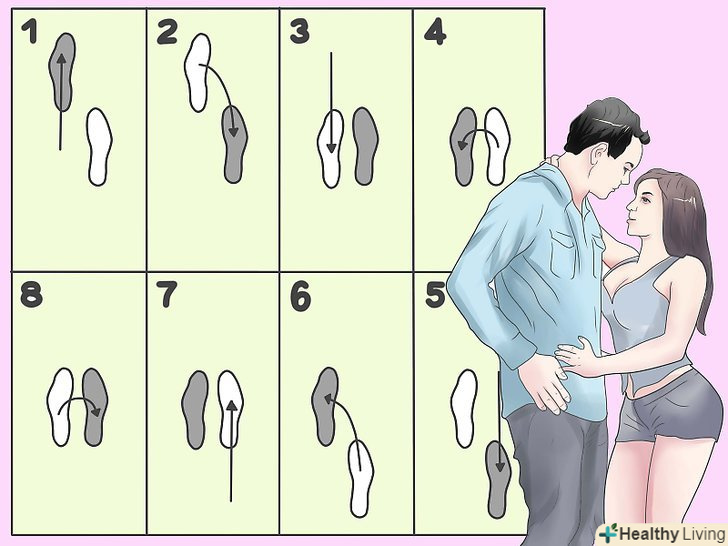 Починаючи з правої ноги, ви повинні наступати на відповідні точки: 1,2,1, 1,3,1, 1,2,1, 1,3,1. У вас рухається- Права нога