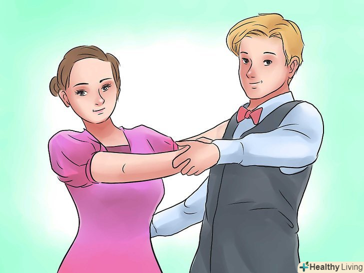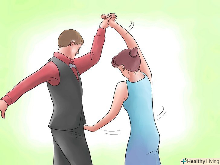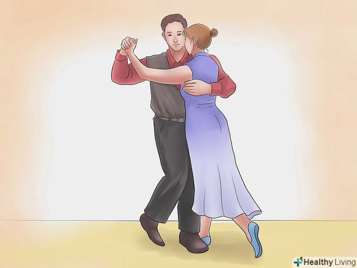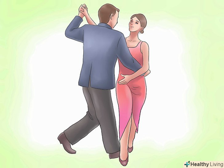 Спочатку потренуйтеся на самоті.перед тим, як танцювати в парі, особливо якщо ви ведете, важливо навчитися робити базові кроки. Уявіть, що йдете в спорт-зал в міні-спідниці і на високих підборах! Ну вже ні. Спочатку потрібно підготуватися.- Обидва партнери повинні запам'ятати цей ритм: повільно, повільно, швидко, швидко, повільно. Кроки для ведучого: